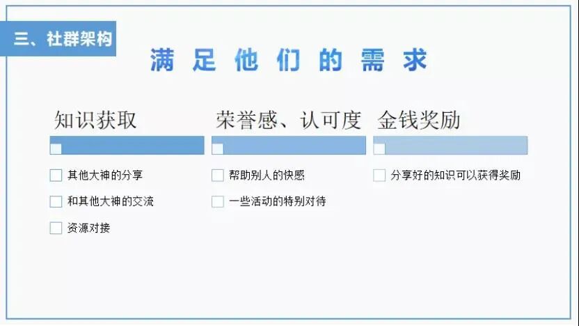 那么如何具体的满足他们的需求让他们愿意在群里去输出知识呢?接下来细谈一下如何满足大神的需求。