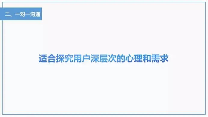 分析用户画像的第一步是我们需要去做用户调研,真正的了解目标用户群体的状况。关于用户调研,这里给大家分享三个方法,分别是问卷调查、一对一沟通、大数据分析。